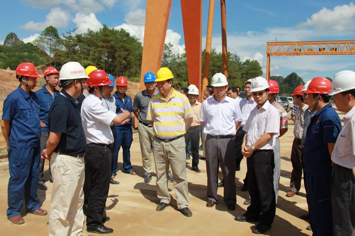 2011年8月3日下午,區(qū)交通運(yùn)輸廳廳長潘巍一行蒞臨由廣西壯族自治區(qū)公路橋梁工程總公司承建的靖那1標(biāo)施工現(xiàn)場視察工作。