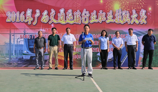 自治區(qū)交通運(yùn)輸廳總工程師王劼耘在2016年廣西交通運(yùn)輸行業(yè)職業(yè)技能大賽開(kāi)幕式上致辭