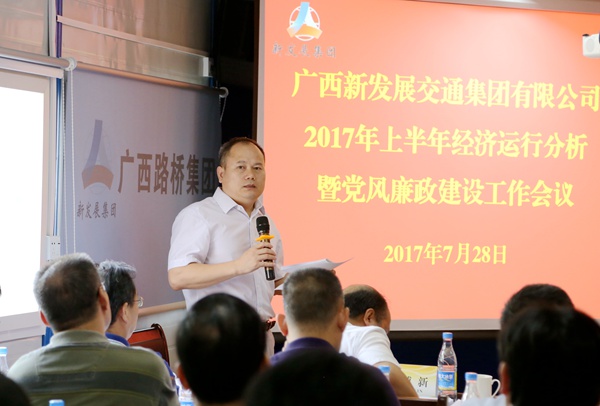 7月28日,集團(tuán)公司在南寧市柳南高改快3標(biāo)項(xiàng)目召開2017年上半年經(jīng)濟(jì)運(yùn)行分析暨黨風(fēng)廉政建設(shè)工作會(huì)議。會(huì)議傳達(dá)了交通運(yùn)輸部2017年上半年工作總結(jié)和下半年工作會(huì)議精神,全區(qū)縣域經(jīng)濟(jì)發(fā)展大會(huì)暨年中工作會(huì)議精神以及自治區(qū)國資委2017年上半年經(jīng)濟(jì)運(yùn)行分析、安全生產(chǎn)暨“1+N監(jiān)督閉環(huán)”工作推進(jìn)會(huì)議精神,對(duì)集團(tuán)公司上半年經(jīng)濟(jì)運(yùn)行情況和黨風(fēng)廉政建設(shè)工作情況進(jìn)行了認(rèn)真總結(jié)與分析,研究部署了下一階段工作任務(wù)。會(huì)議由集團(tuán)公司黨委副書記、副董事長、總經(jīng)理唐咸秋主持。
