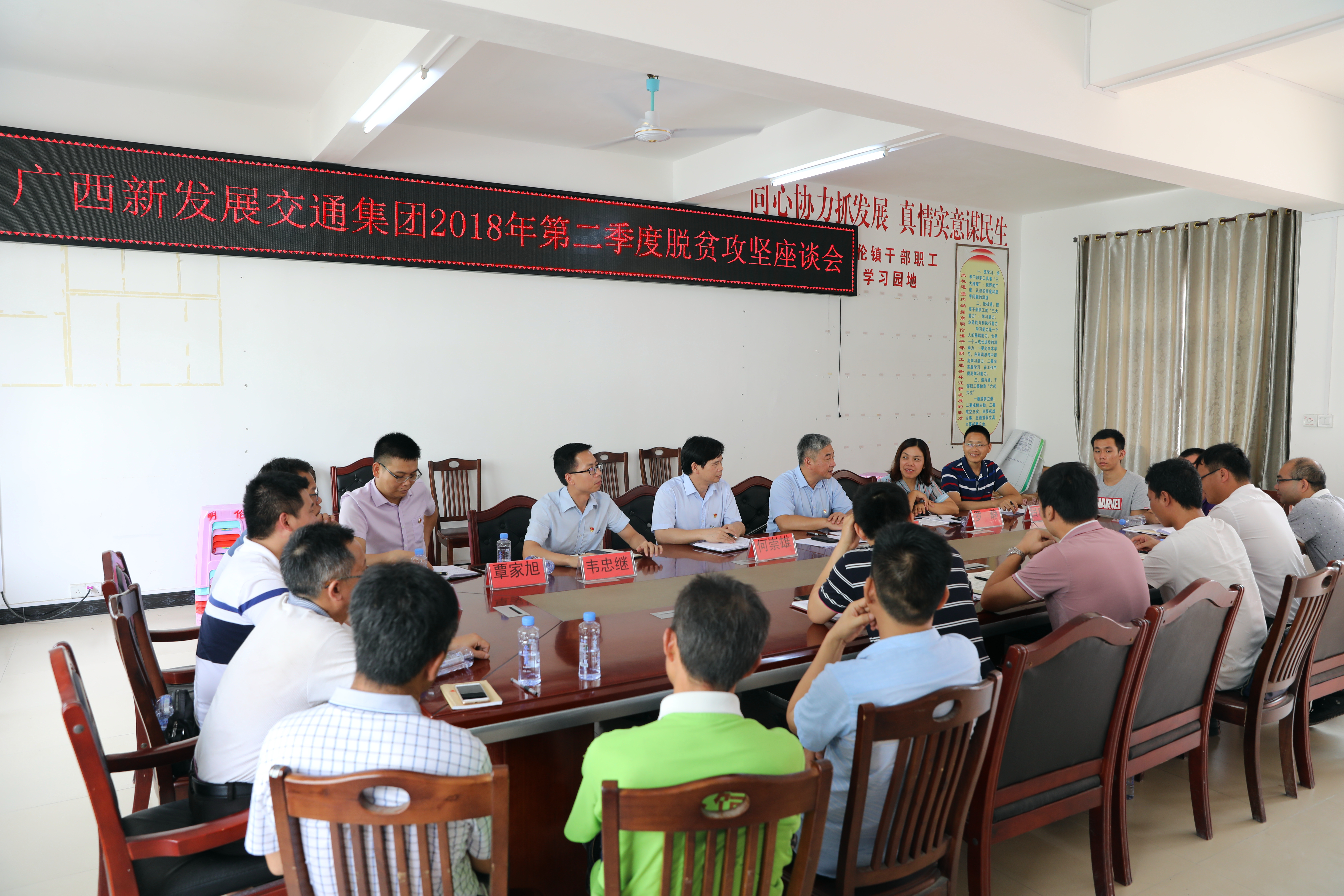 環(huán)江毛南族自治縣明倫鎮(zhèn)黨委書記莫譚剛簡要介紹了鎮(zhèn)情及脫貧攻堅基本情況,并衷心感謝集團公司對明倫鎮(zhèn)的真幫實扶。座談會后,后援單位主要負責人與駐村第一書記進一步深入交流,關(guān)心他們的工作、生活和身體狀況,并為他們加油鼓勁,希望他們繼續(xù)保持干勁,確保按時保質(zhì)保量完成脫貧任務。